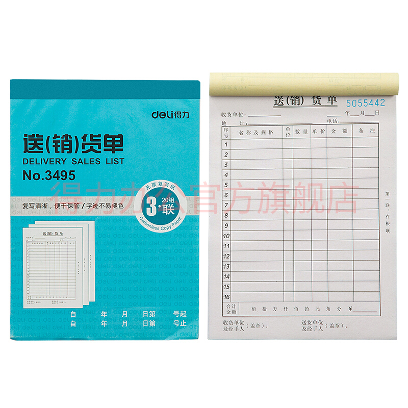 - 商品名称:得力(deli)单据票据二联/三联/多栏出入库单销售清单送货单批发经济款3493三联送(销)货单