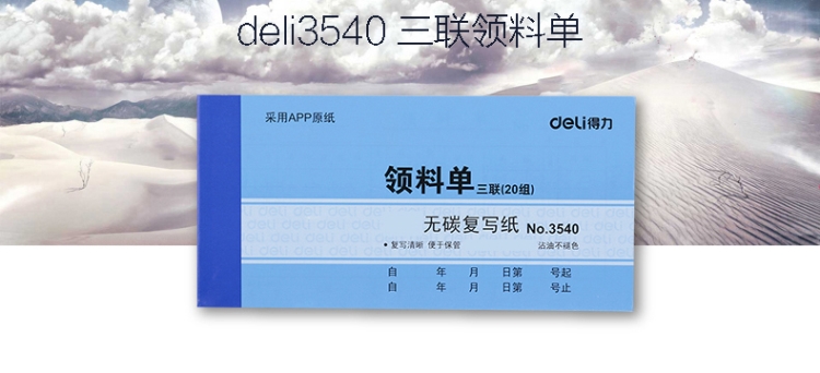得力(deli) 单据票据收据领料出库入库送销货单 无碳复写纸财务办公用品3540三联领料单十本装