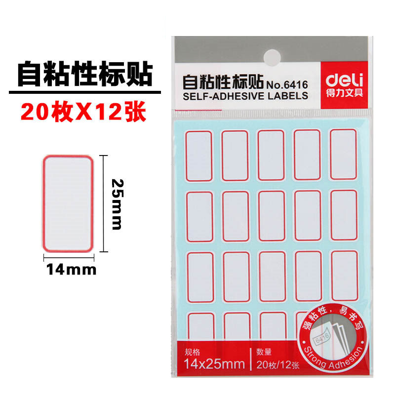 得力6416自粘性标贴14*25mm白色便签贴12张/包10包装