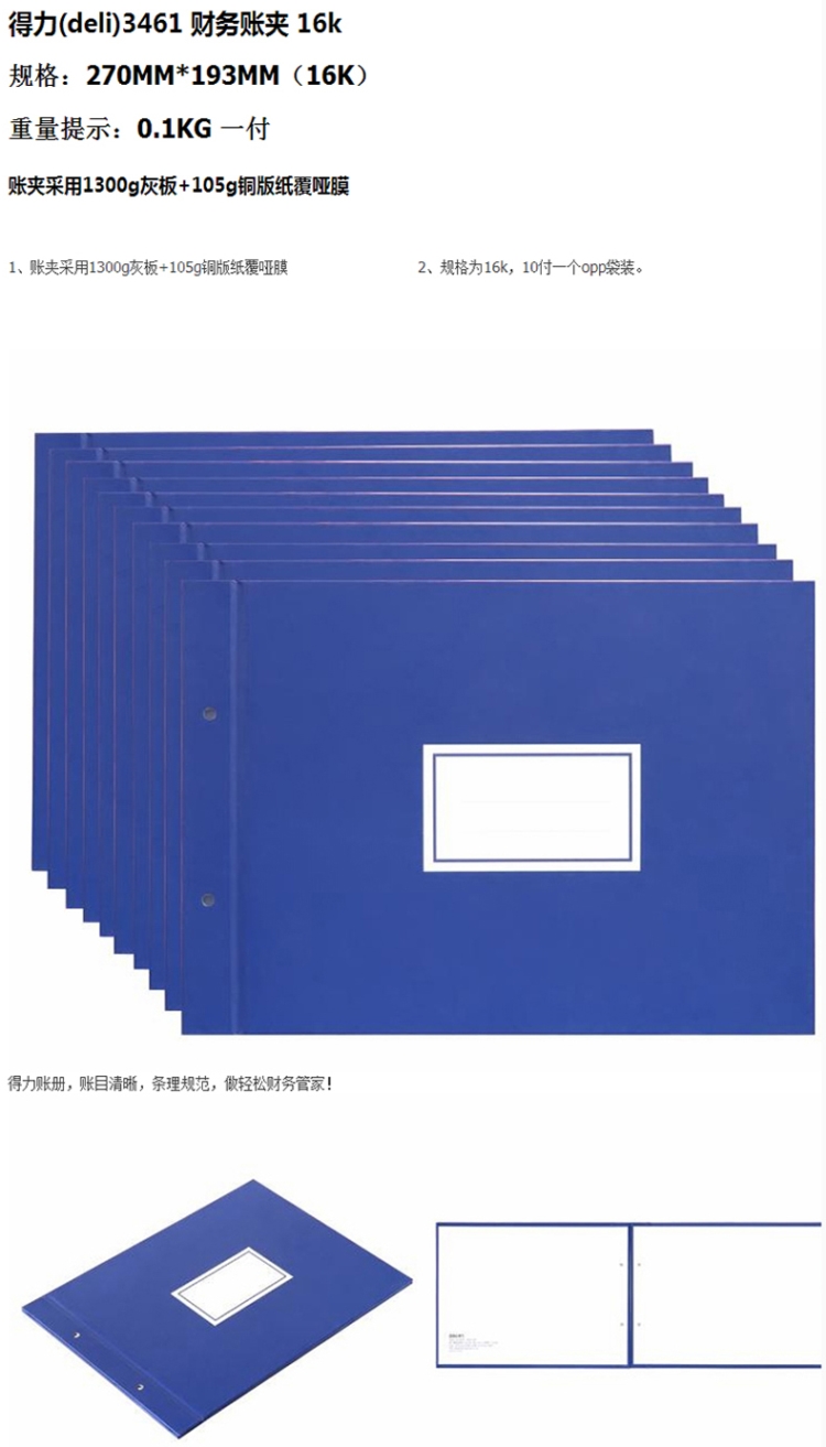- 商品名称:得力(deli)现金日记账 现金账册 出纳账簿账本 财务明细帐本仓库库存账本账册账簿3455三栏分类账-100页-16K(本)