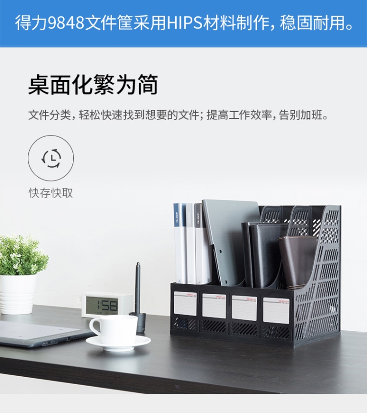 - 商品名称:得力 (deli)四联/四栏文件筐/文件框 文件架 办公用品收纳框9848Z黑色