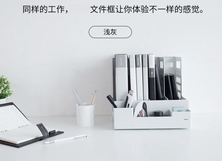 - 商品名称:得力办公四联文件框a4桌面收纳书立架资料架文件筐加厚文件整理置物架收纳盒档案筐78983-高强度四联带笔筒-深灰