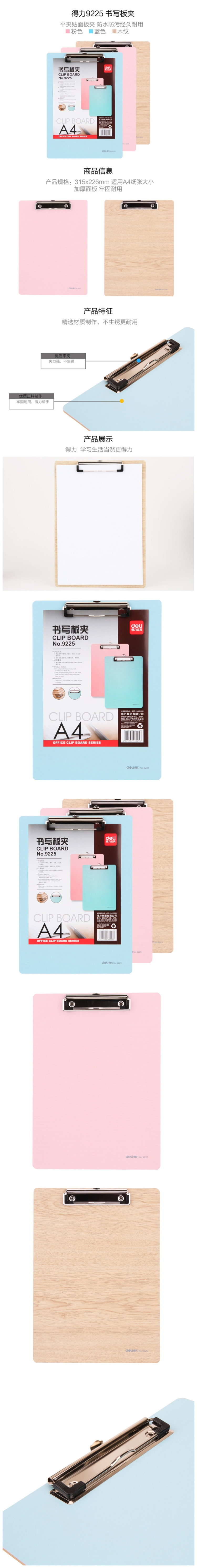 - 商品名称:得力(deli) 9225文件夹板垫板夹写字板书写板纸夹板A4夹垫板车间用办公用品粉红色