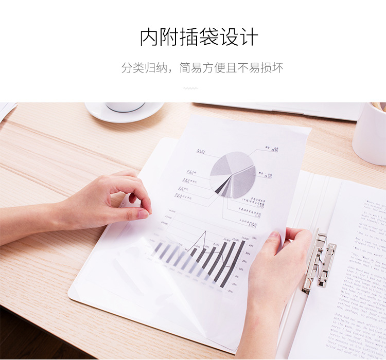 得力(deli) 乐素系列72415文件夹试卷夹资料夹 A4单强力夹+插袋办公用品浅蓝