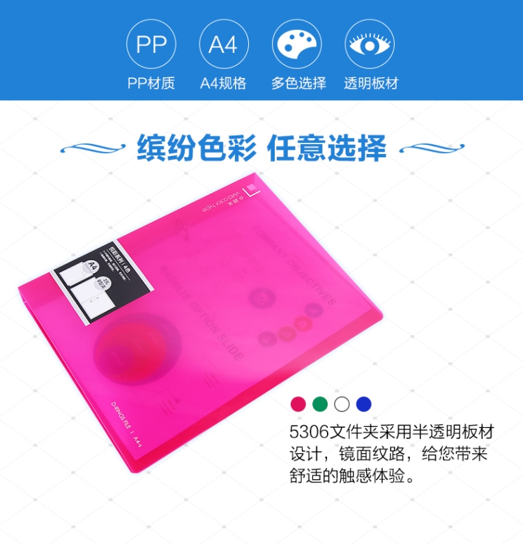 得力(deli) 5539透明抽杆夹文件夹 A4抽杆夹 文件封面颜色随机办公用品10只装