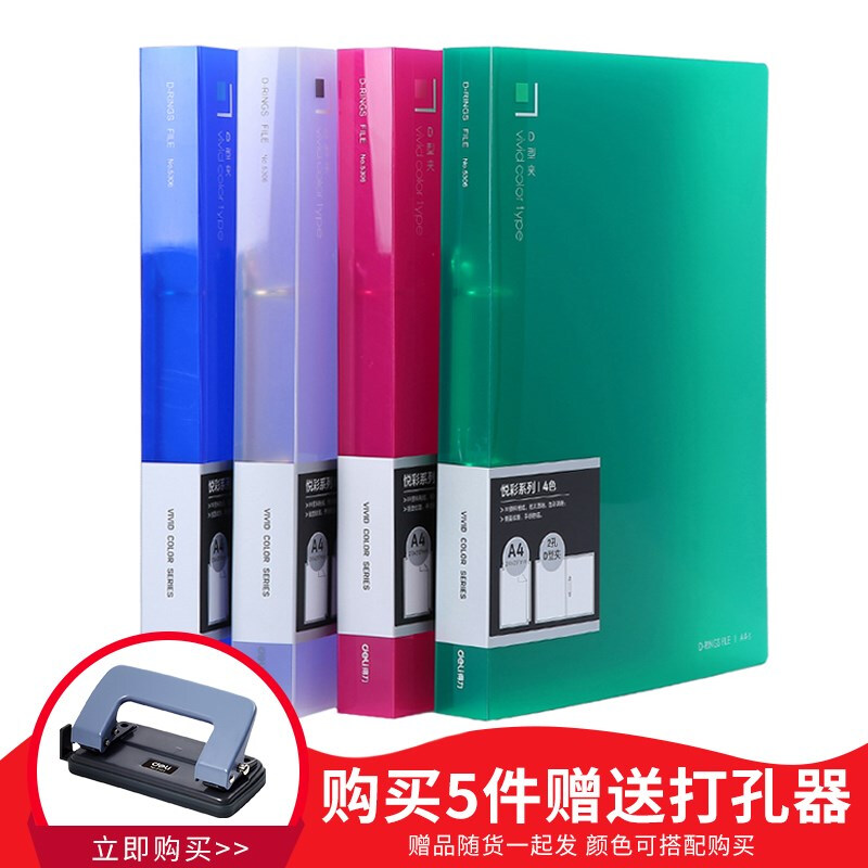 得力(deli)文件夹A4资料册透明活页试卷夹文件夹颜色随机单个装5034--40页