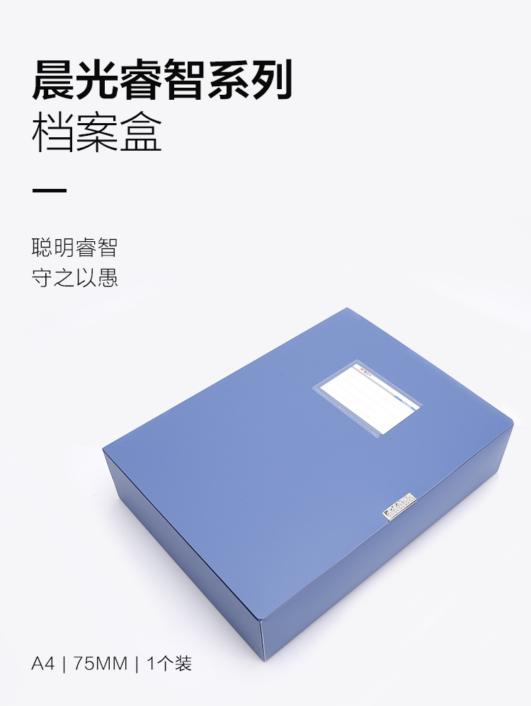 - 商品名称:晨光(M-G)办公A4/75mm蓝色粘扣大容量档案盒 加厚文件盒睿智系列党建资料盒/财务凭证收纳盒单个装ADM92990