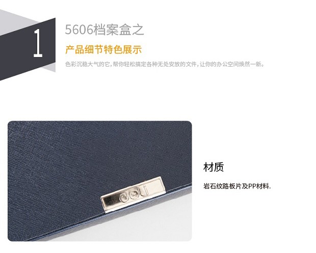 - 商品名称:得力(deli) A4加厚档案盒塑料文件夹收纳盒 粘扣资料盒办公用品5606蓝色(宽55mm)