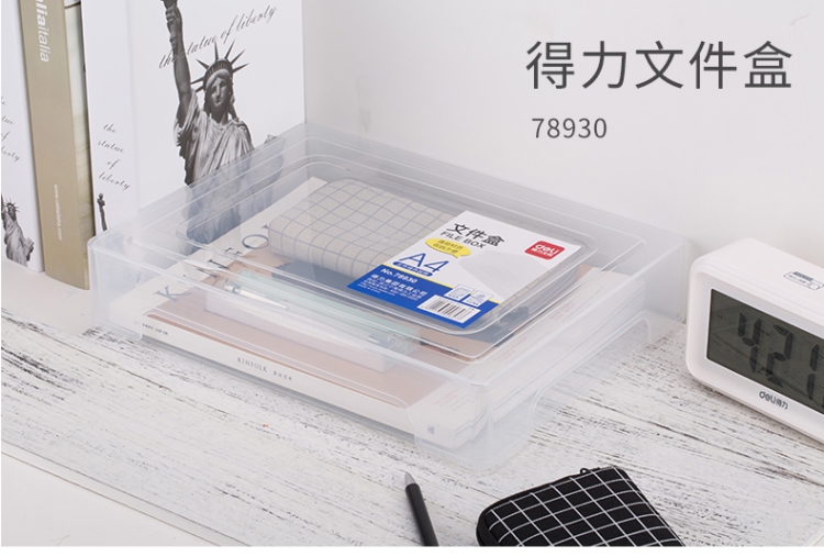 - 商品名称:得力(deli) A4透明文件盒塑料资料文件收纳档案盒 5702蓝手提式