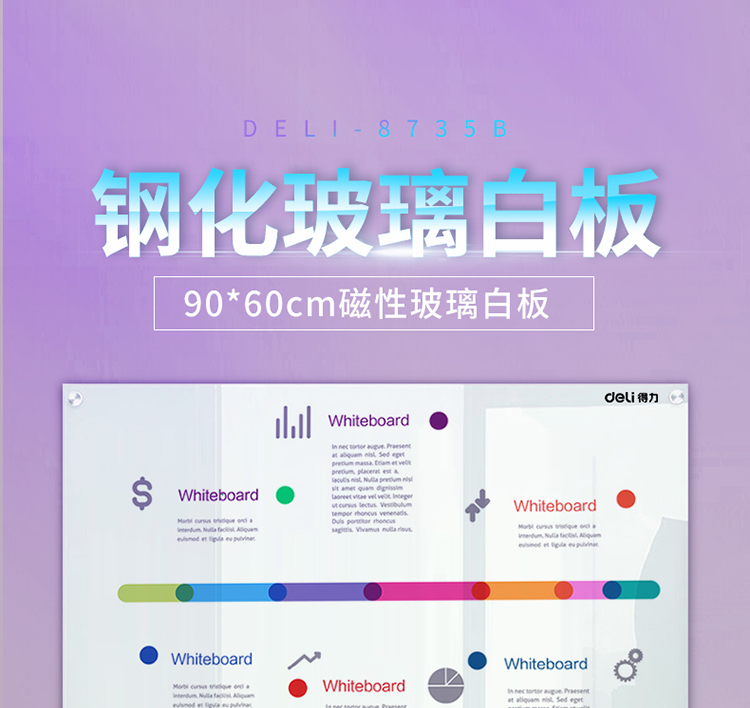 得力(deli)挂式白板90*60cm磁性钢化玻璃白板抗划书写顺畅会议写字板黑板8735B