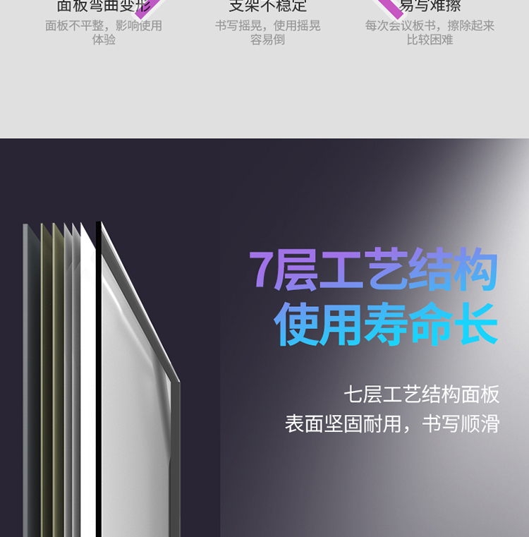 得力(deli)支架式白板150*90cm玻璃带架子白板会议办公写字板黑板8737