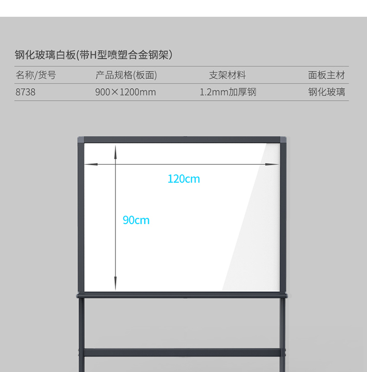得力(deli) 90*180cm玻璃带架子H型支架白板 办公会议写字板黑板8739