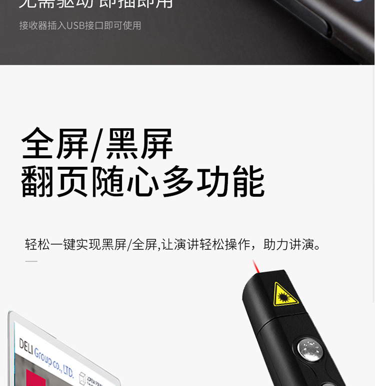 - 商品名称:得力(deli)393050米遥控一体式翻页笔/PPT课件翻页笔/激光翻页笔/无线演示器红光