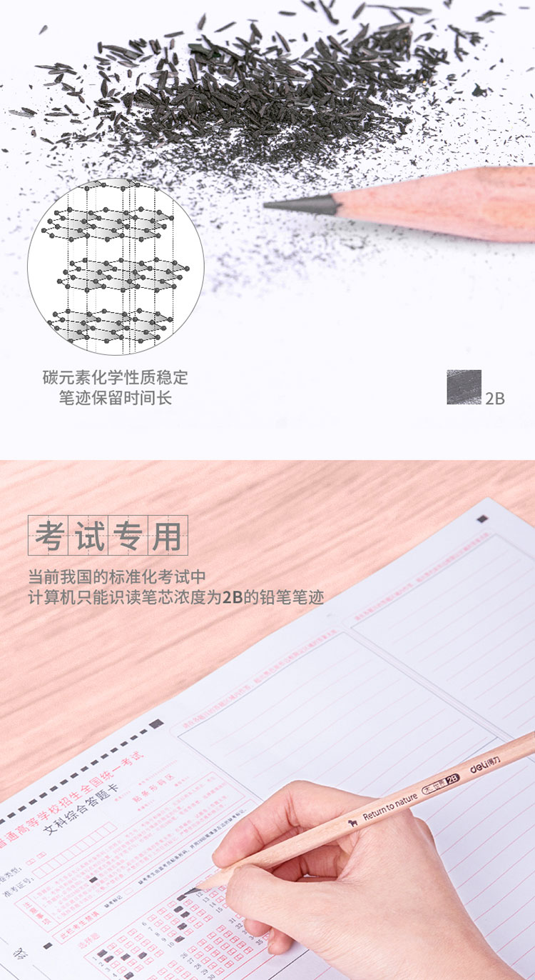 - 商品名称:得力(deli)木世界系列六角笔杆原木2B铅笔考试专用学生铅笔50支/桶S907