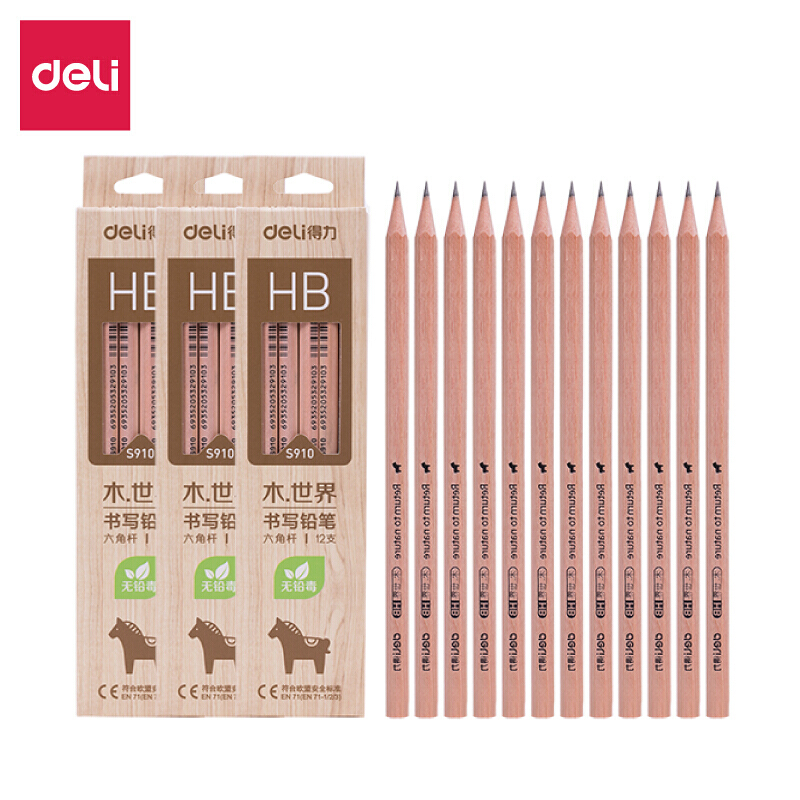 得力(deli) 得力 铅笔 书写 绘画铅笔 铅笔笔 学生铅笔HB(S910)12支/盒