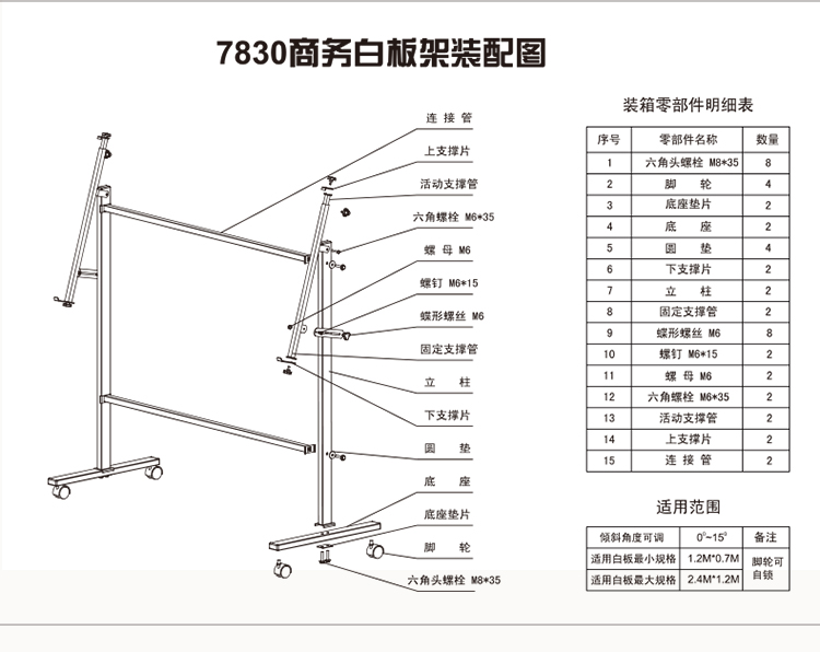 得力(deli)120*56*157cm稳定耐用白板架 加厚 稳定双横杠(黑)7830