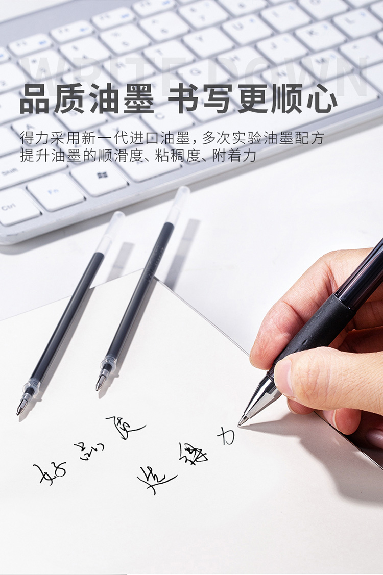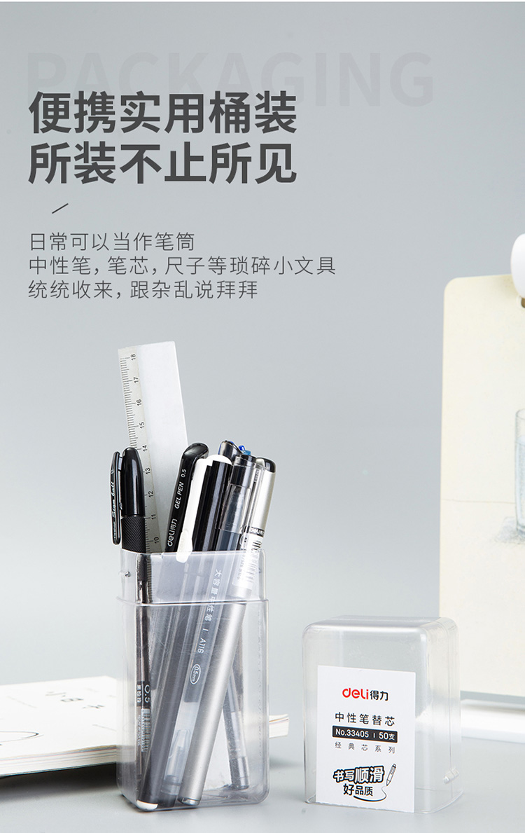 - 商品名称:得力33405(deli)0.5mm黑色子弹头中性笔芯 水笔签字笔替芯50支/桶