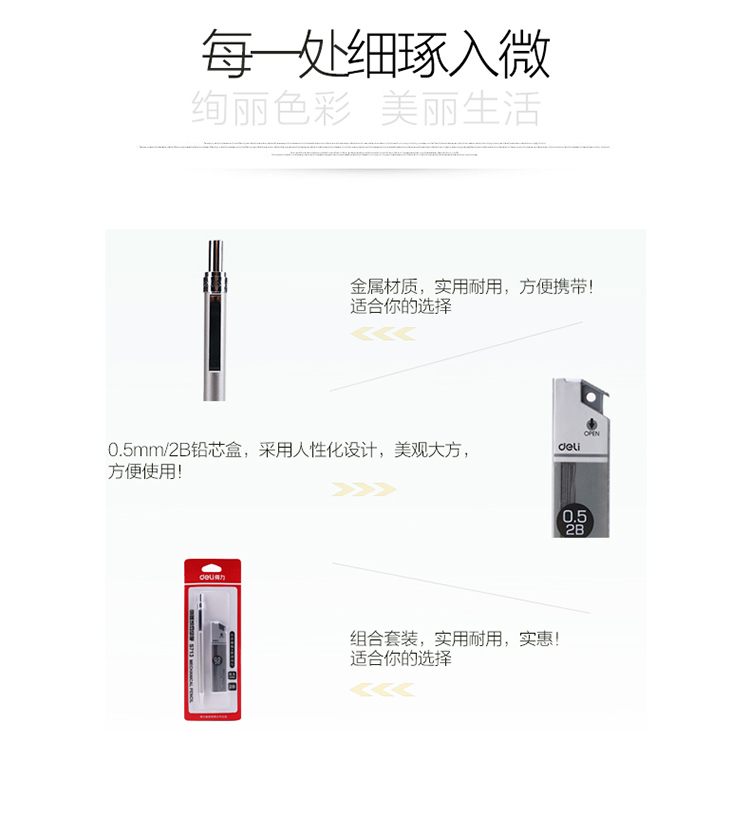 - 商品名称:得力S713(deli)0.5mm学生活动自动铅笔套装 (笔+铅芯)