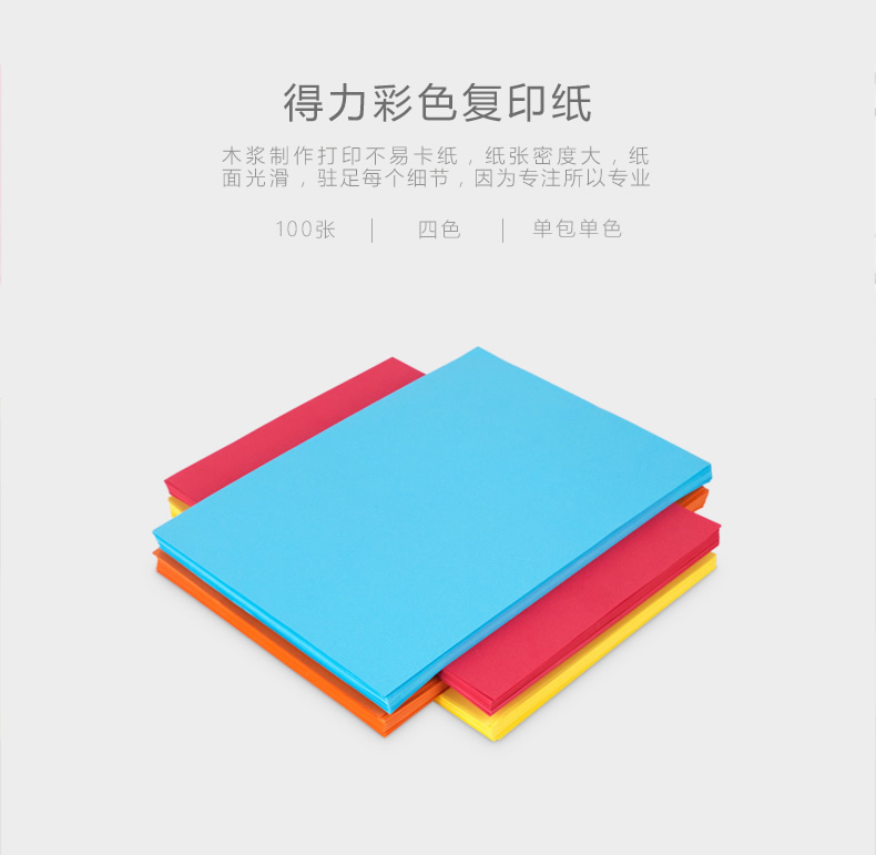 - 商品名称:得力浅红色彩色A4复印纸 彩纸 a4彩色打印纸 80g复印纸彩色打印纸 100张