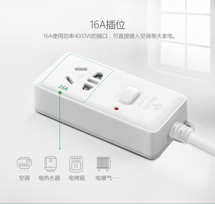 - 商品名称:公牛(BULL) GN-104D全长1.8米1位总控大功率16A插座插线板插排/接线板/空调插座