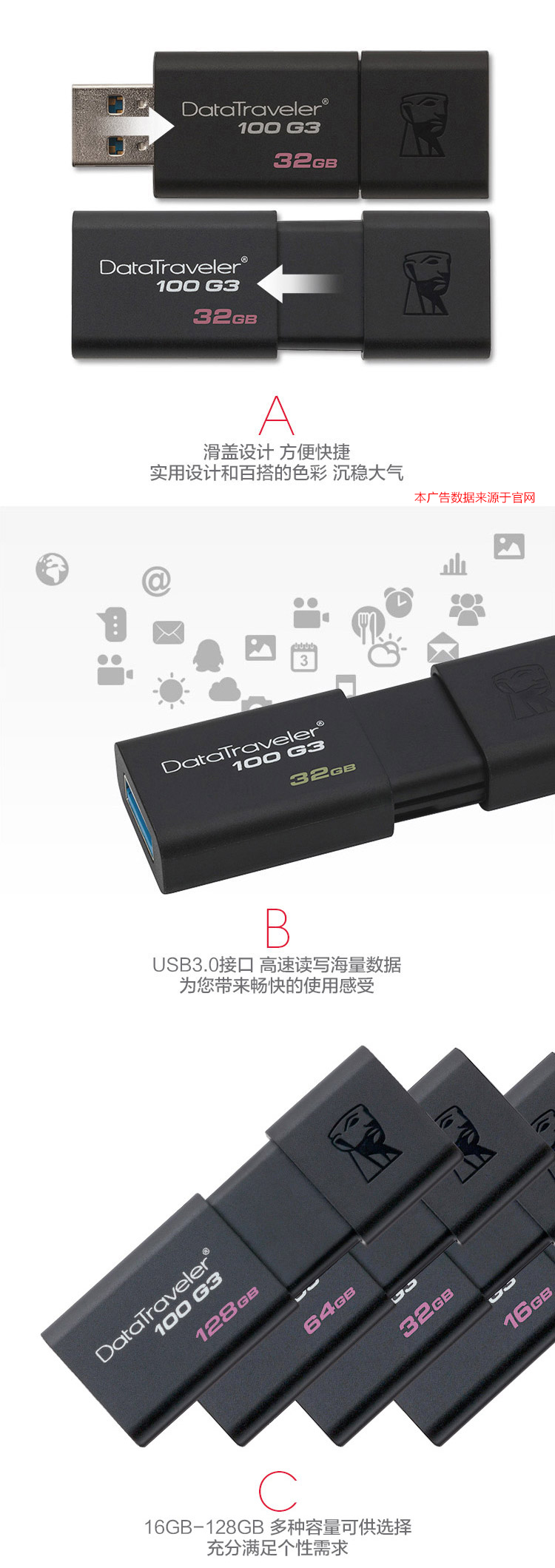 - 商品名称:金士顿(Kingston)16GB u盘 USB3.0 DT100G3 系统投标车载高速优盘