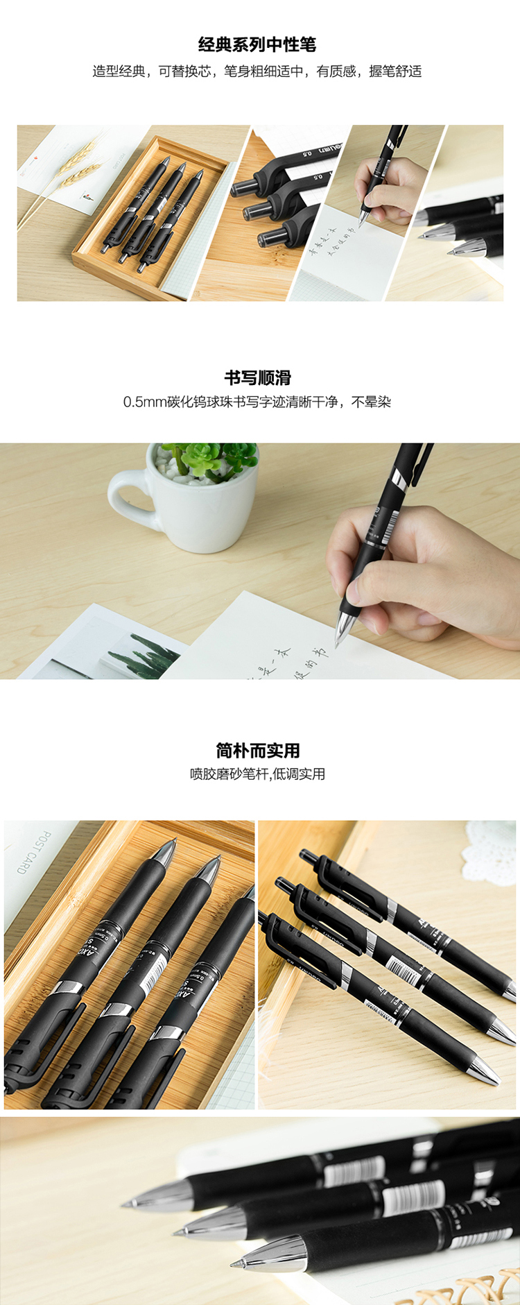 - 商品名称:得力(deli)DL-S10中性笔签字笔 0.5mm子弹头磨砂杆学生办公按动笔水笔 黑色 12支/盒