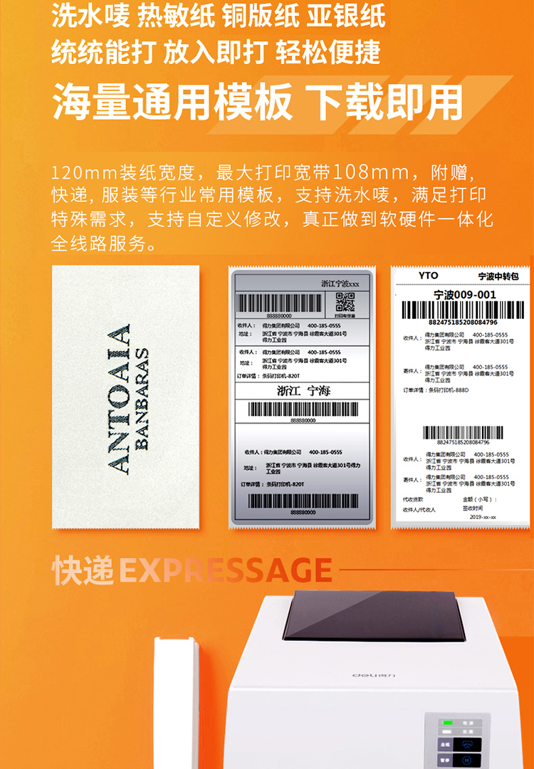 得力(deli)DL-888D 热敏不干胶打印机 电子面单 条码标签打印机