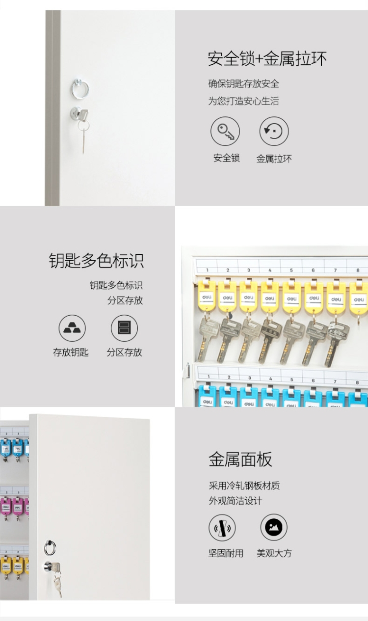 - 商品名称:得力(deli) 钥匙箱 金属钥匙柜钥匙箱壁挂式汽车钥匙管理箱子锁匙收纳盒48位(9323)