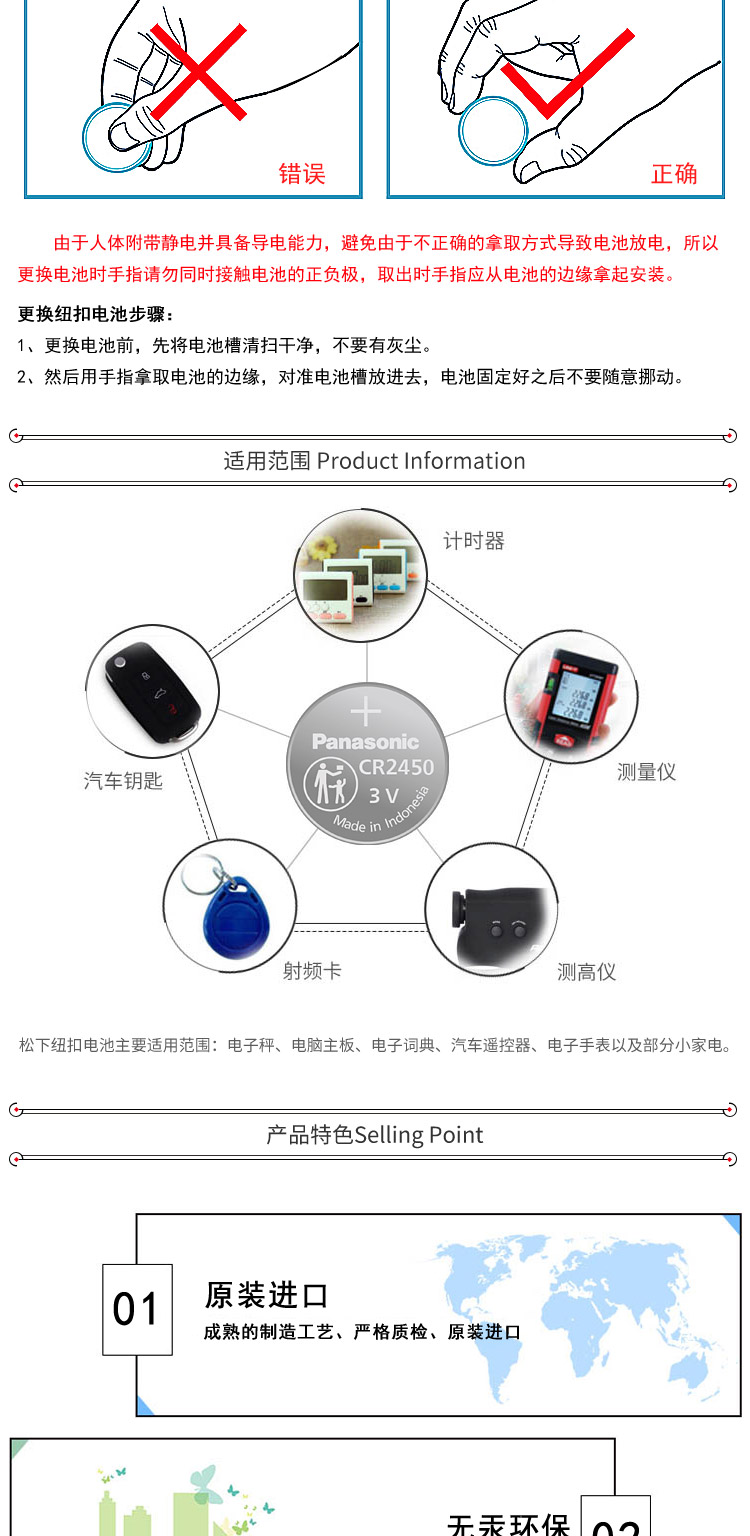 - 商品名称:松下(Panasonic)CR2450纽扣电池 3V 适用部分宝马汽车1/3/5/7系钥匙遥控器电池 原装进口1粒精装