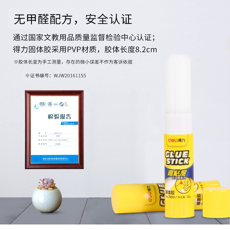- 商品名称:得力(deli) 6372高粘度PVP强力固体胶棒胶水 无甲醛配方 办公用品 36g 4只装
