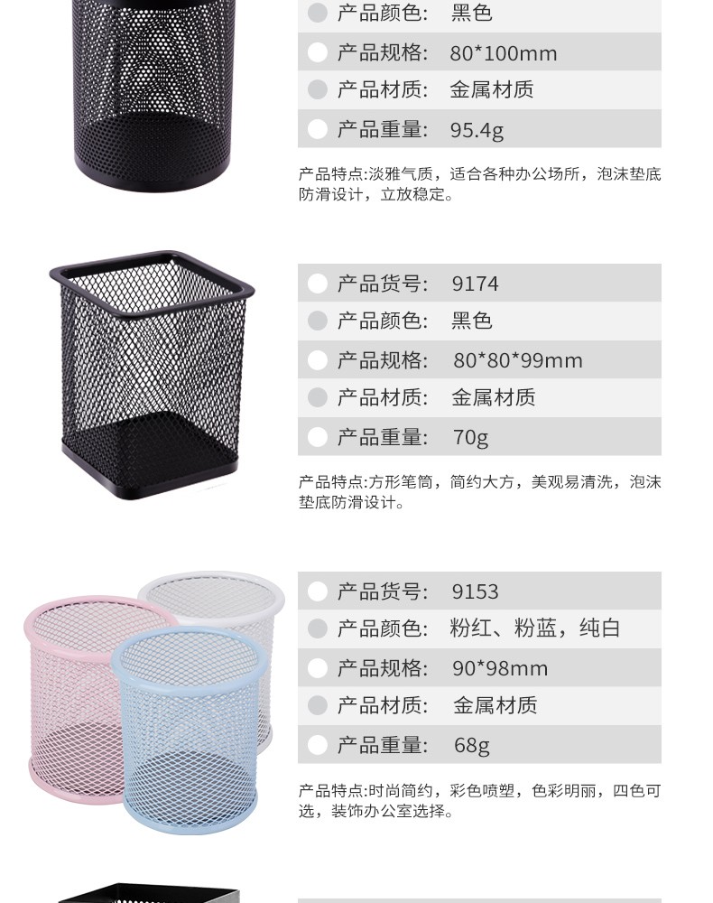 - 商品名称:得力 909笔筒办公文具 学生圆形金属网格笔插 创意收纳摆件 办公用品 金属板片圆款