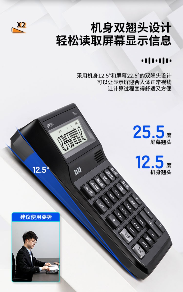得力(deli)1556计算器大屏幕语音计算器男女真声语切换银灰色