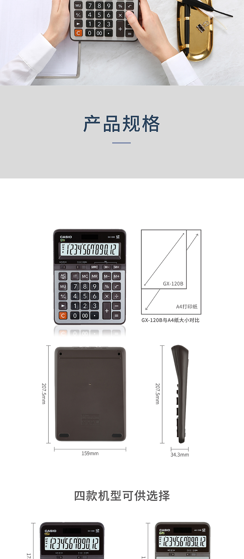 - 商品名称:卡西欧(CASIO)GX-120B 商务计算器 超大型机 办公用品 灰色 GX-120S升级款