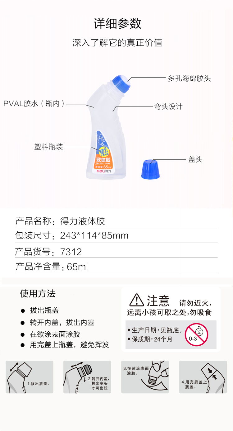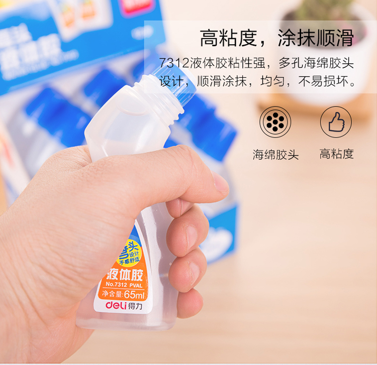 - 商品名称:得力7312(deli)65ml高粘度弯头液体胶水 12只装 办公用品 蓝色