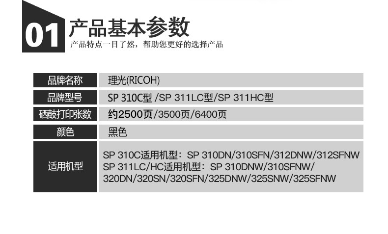 - 商品名称:理光(Ricoh) SP 310C/311型墨粉盒硒鼓适用310/312/325DNW/SFNW机型 311LC型