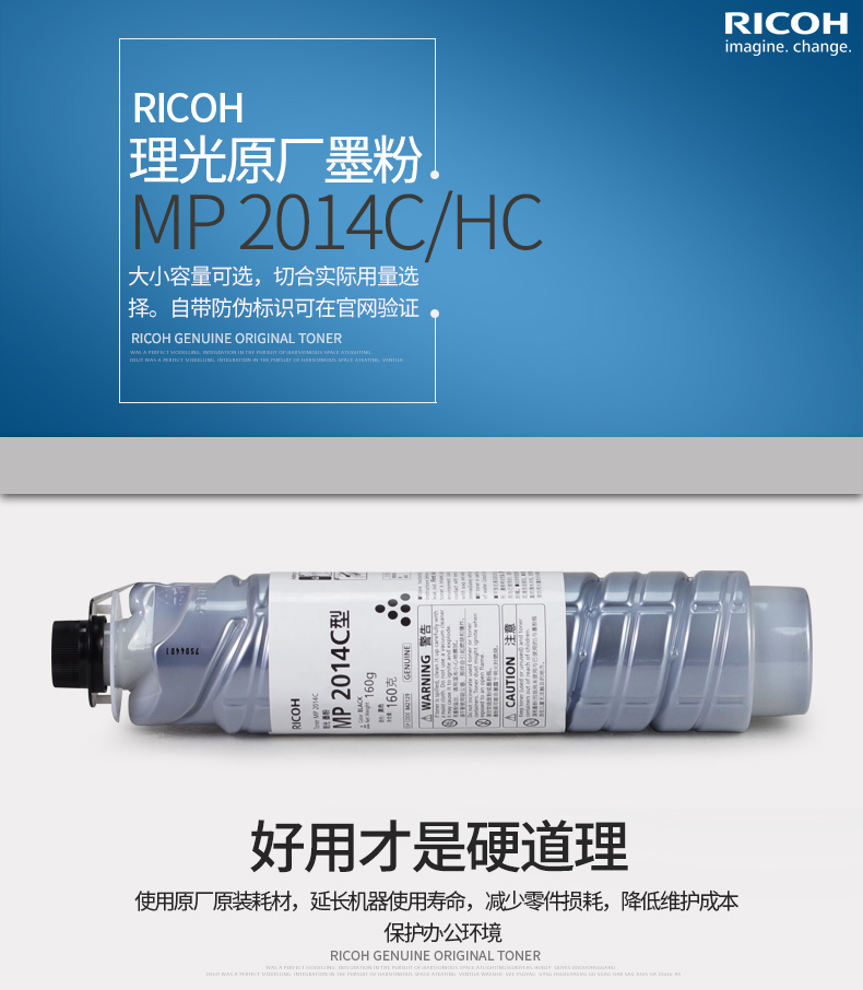 - 商品名称:理光(Ricoh) MP 2014C/HC型黑色墨粉碳粉2014/D/AD/EN原装粉盒 MP 2014HC大容量 单支装