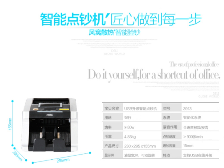 - 商品名称:得力3913全智能USB升级点钞机语音播放验钞机银行专用新币点钞机银黑