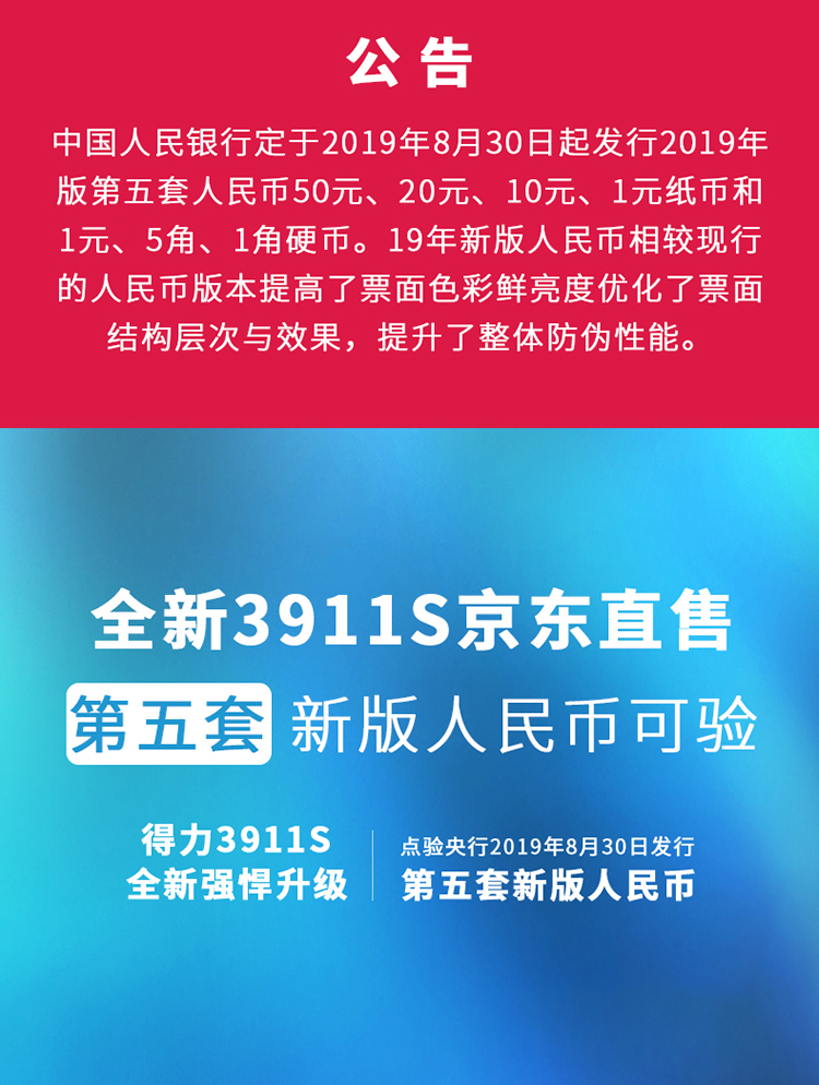 - 商品名称:得力(deli))2019年新版人民币点钞机验钞机 智能银行专用B类自动清洁商用家用收银支付点钞机数钱机3911S