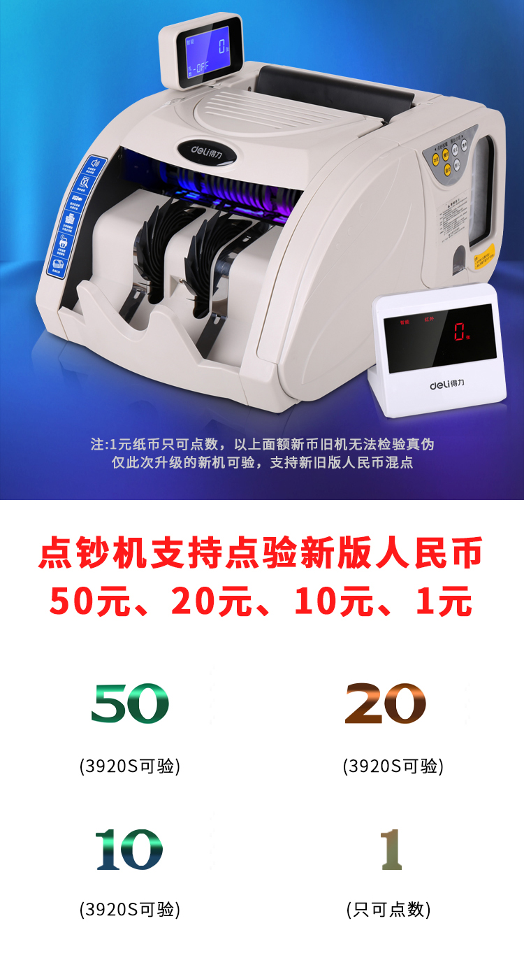得力3910A点钞机银行专用B类支持新人民币USB升级验钞机得力2196B级点钞机