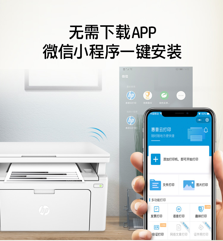 惠普(HP)NS1005w 智能闪充无线激光多功能一体机打印复印扫描三合一M1005升级无线经济大粉仓满装5000页