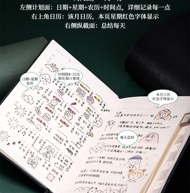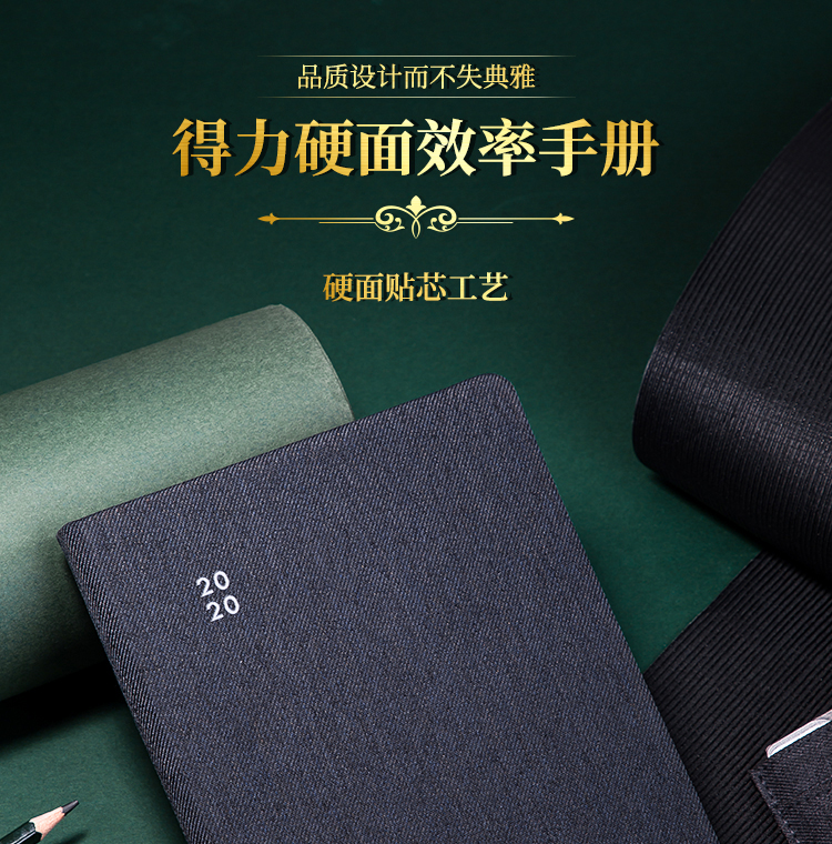 - 商品名称:得力(deli)25K96张绑带笔记本子2020年工作效率手册本日程计划记事本黑色22277