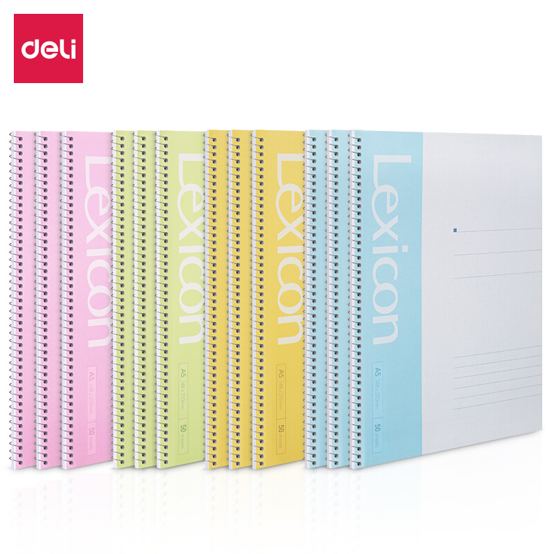 - 商品名称:得力(deli)12本A5/50张螺旋装订软抄本线圈本办公记事本笔记本子7682