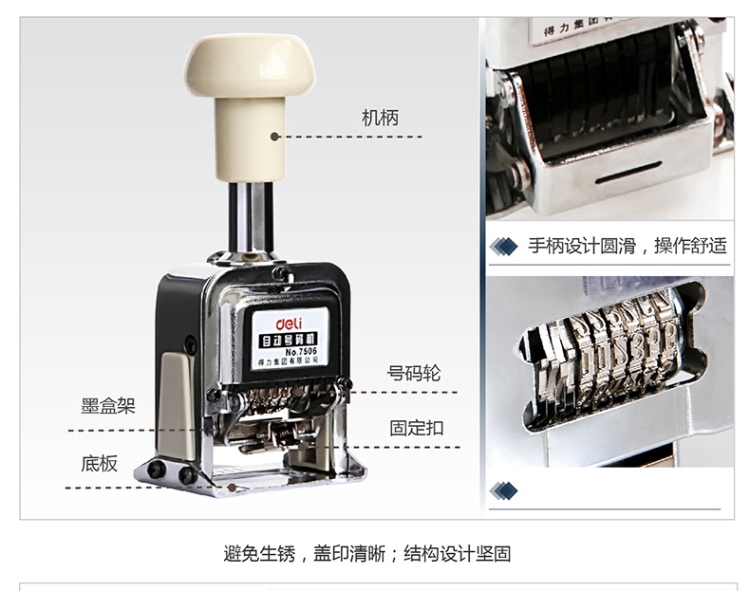 - 商品名称:得力 自动号码机 手动打码机 编号打号器 页码机日期可调数字印章系列10位自动号码机7510