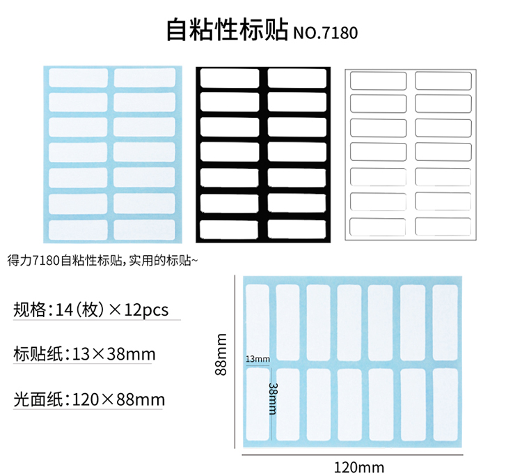 - 商品名称:得力(deli)168枚13×38mm不干胶标签贴纸自粘性标贴 14枚/张7180-168