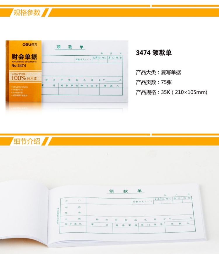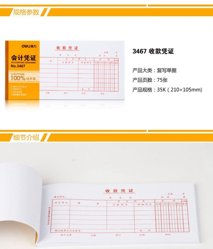- 商品名称:得力 费用报销费用单财务会计记账凭证纸常用办公用品报销单文具原始凭证粘贴单(210*105mm)3476加厚材质/精细印刷